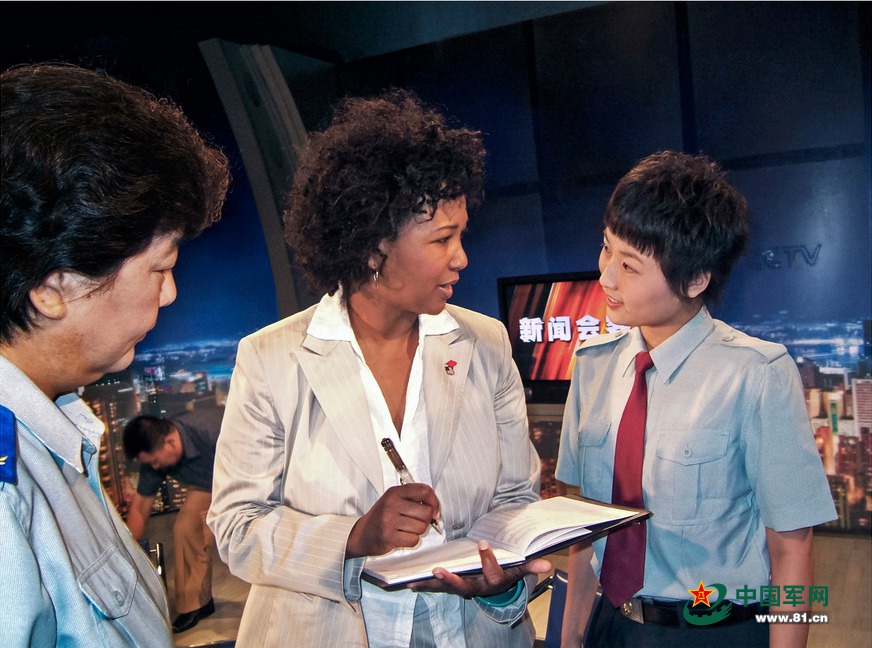 Tao Jiali and Mae Jemison, the first African American woman to travel in space, are invited to attend a TV program by CCTV in July 2005. (Chinamil.com.cn/Tan Chao)
