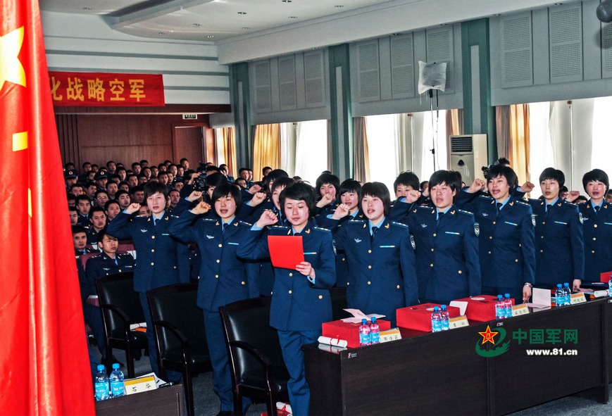Tao Jiali and her team members take an oath to the national flag. (Chinamil.com.cn/Tan Chao)