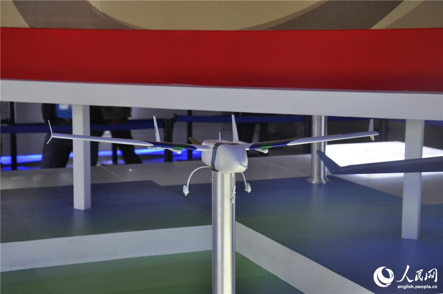 Model of the SW-1 UAV System displayed at the 10th China International Aviation & Aerospace Exhibition (Airshow China 2014) scheduled from Nov. 11 to 16 in Zhuhai, south China’s Guangdong province. (People’s Daily Online/Sun Zhao)