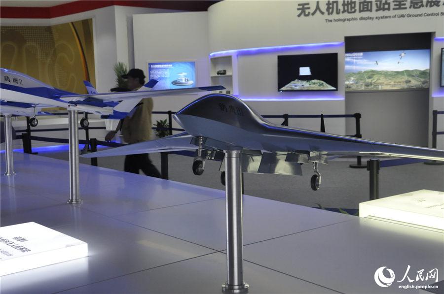 Model of the Harrier III Long-endurance All-purpose UAV System displayed at the 10th China International Aviation & Aerospace Exhibition (Airshow China 2014) scheduled from Nov. 11 to 16 in Zhuhai, south China’s Guangdong province. (People’s Daily Online/Sun Zhao)