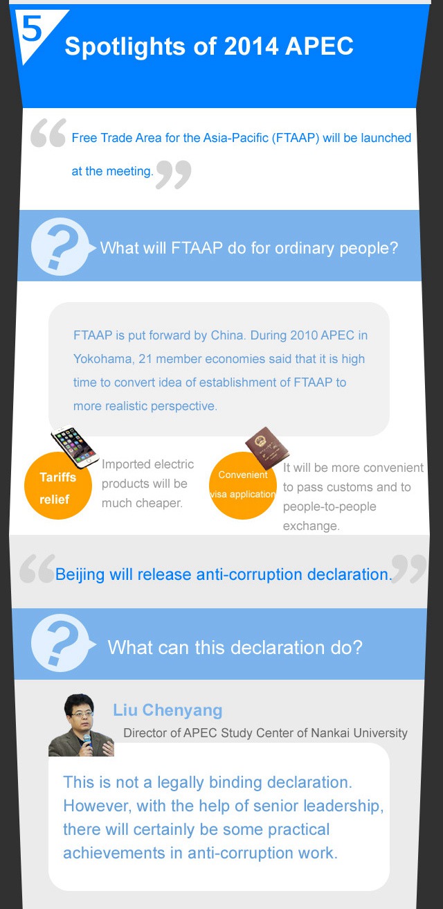 Editor's note: The 22nd informal Asia Pacific Economic Cooperation (APEC) informal economic leaders' meeting will be held in Beijing. What do you know about 2014 APEC? A diagram will let you to know more about it.