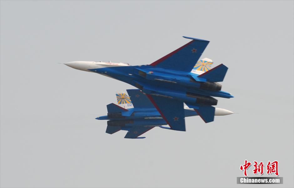 On Nov. 12, 2014, the Bayi Aerobatics Team of the Chinese Air Force, the Russian Knights Aerobatics Team and the United Arab Emirates’ National Aerobatic Team give splendid performances for guests from both home and abroad at the Airshow China 2014 in Zhuhai. (Chinanews/Chen Wen)