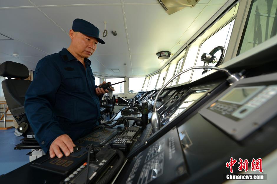 On Nov. 6, 2014, Haixun 1103, the first large patrol ship of the Sanya Maritime Safety Administration, was officially commissioned. The ship is 64 meters long, 10 meters wide, with 830 tons of displacement and 1,800 sea miles of cruising ability. The well-equipped ship is capable of conducting air and sea cruise under various weather conditions. (Chinanews/Luo Yunfei)