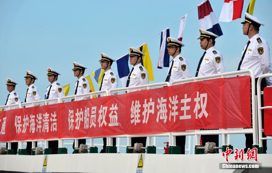 On Nov. 6, 2014, Haixun 1103, the first large patrol ship of the Sanya Maritime Safety Administration, was officially commissioned. The ship is 64 meters long, 10 meters wide, with 830 tons of displacement and 1,800 sea miles of cruising ability. The well-equipped ship is capable of conducting air and sea cruise under various weather conditions. (Chinanews/Luo Yunfei)