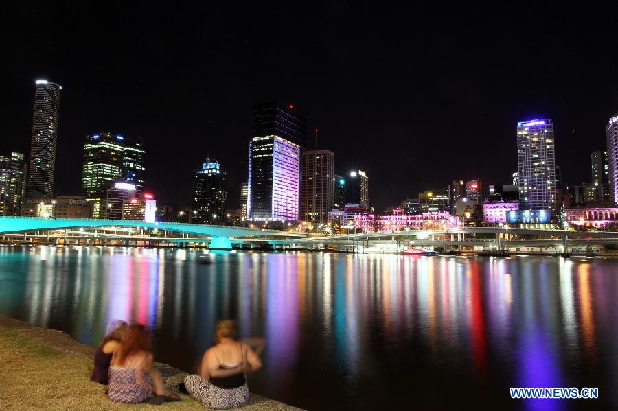 Photo taken on Nov. 14, 2014 shows a light show in Brisbane, Australia. The G20 Summit is to be held in Brisbane on Nov. 15 to Nov. 16. (Xinhua/Jin Linpeng)