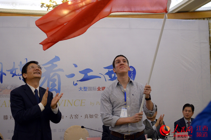 A network media marketing activity "2014 foreign media visiting Jiangxi", which aims to promote the province’s tourism in overseas market, kicked off Friday afternoon in Nanchang, capital city of Jiangxi province. More than 40 reporters from foreign-language media in China will visit Jiangxi province until Nov. 20. Yao Yaping, head of the Publicity Department of Jiangxi province presented a flag to the participants at the opening ceremony.