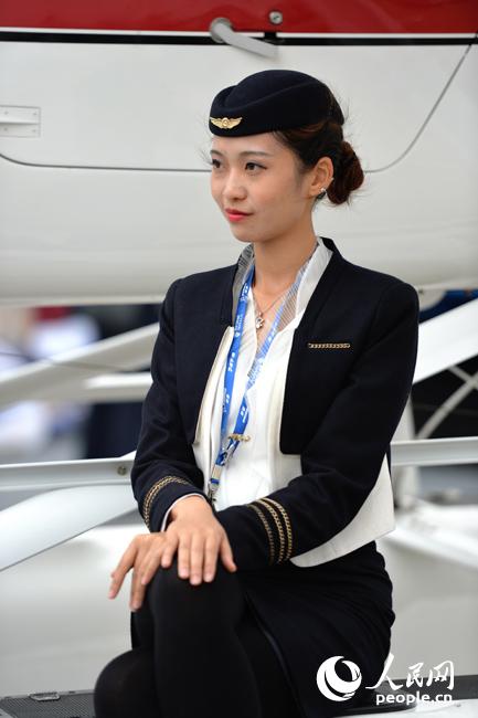 | Stewardesses perform an uniform show at the Airshow China, Nov. 13, 2014. (People's Daily Online/Weng Qiyu) |