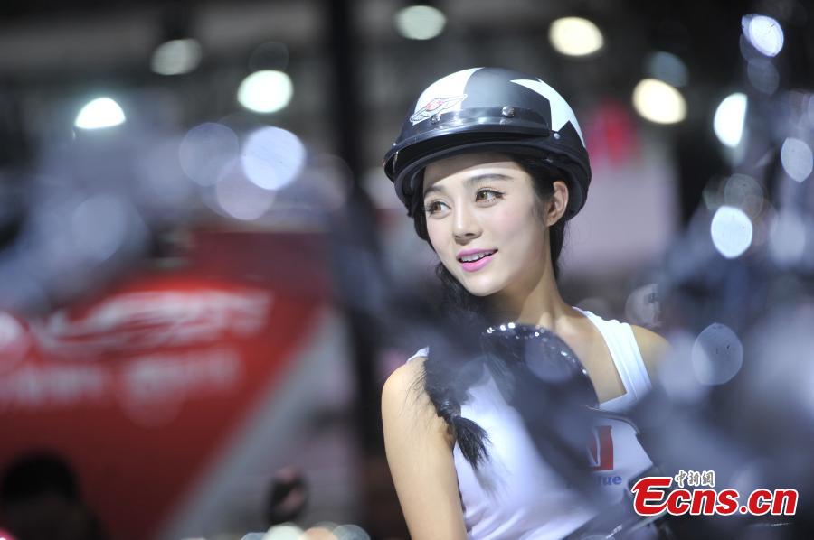 A beautiful model is at a motor show held in southwest China’s Chongqing on November 15, 2014. [Photo: China News Service / Chen Chao]