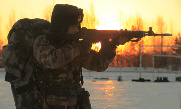 Soldiers from border defense regiments of Shenyang military region have skiing exercise braving minus 20 degree temperature. (CNS/Wei Jianshun)