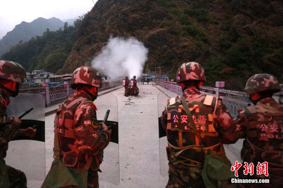 On Nov. 16, 2014, the frontier police force in Tibet and the armed police and fire department of Nepal conduct a joint exercise at the Sino-Nepal Friendship Bridge. The exercise focused on dealing with emergency situations such as attacks at the checkpoints. The joint exercise effectively improved the cooperation ability between the armed police of the two countries. (Chinanews/Zheng Yongbo)