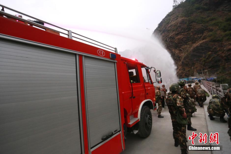 On Nov. 16, 2014, the frontier police force in Tibet and the armed police and fire department of Nepal conduct a joint exercise at the Sino-Nepal Friendship Bridge. The exercise focused on dealing with emergency situations such as attacks at the checkpoints. The joint exercise effectively improved the cooperation ability between the armed police of the two countries. (Chinanews/Zheng Yongbo)
