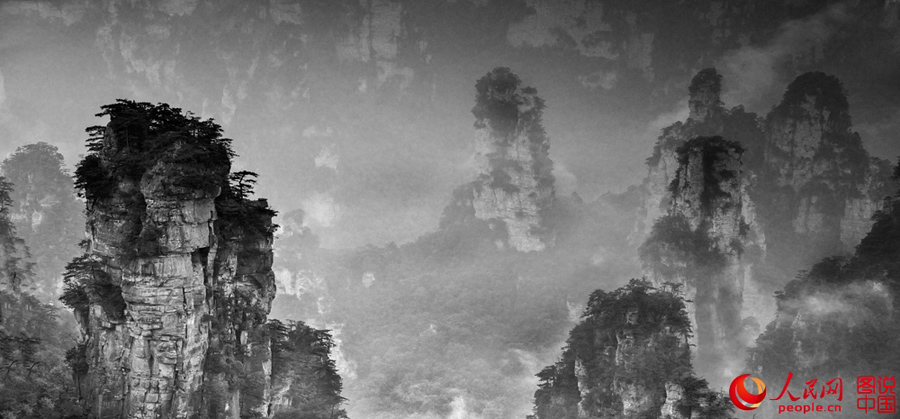 Located in northwest Hunan Province, Zhangjiajie National Forest Park is a famous tourist attraction. The unique landscape is like a Chinese ink painting in black and white. (Photo source: people.cn)