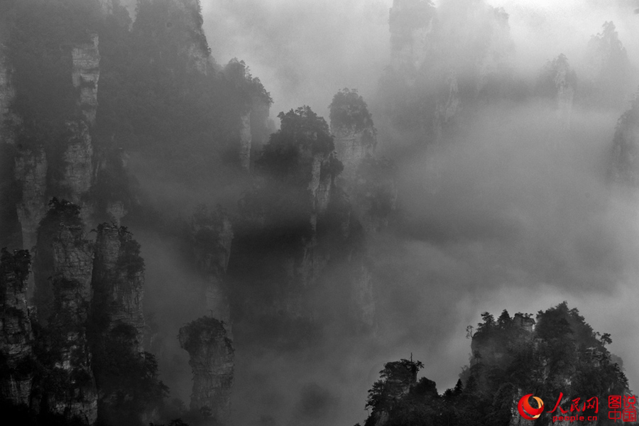 Located in northwest Hunan Province, Zhangjiajie National Forest Park is a famous tourist attraction. The unique landscape is like a Chinese ink painting in black and white. (Photo source: people.cn)