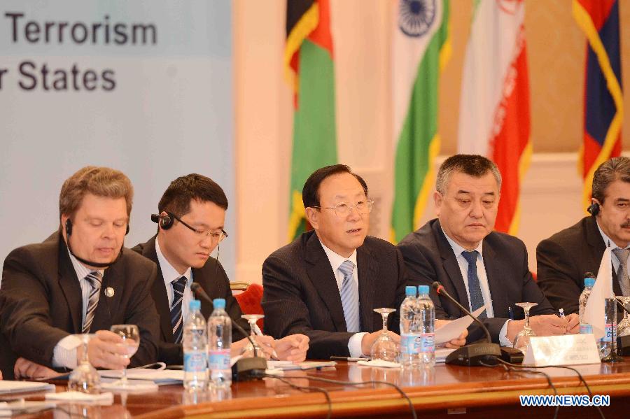 Zhang Xinfeng (C), director of the Executive Committee of SCO's Regional Anti-Terrorism Agency, attends the Second Conference on Cooperation against International Terrorism and Extremism between SCO Member States and Observer States, in Tashkent, capital of Uzbekistan, on Nov. 18, 2014. (Xinhua/Sadat)
