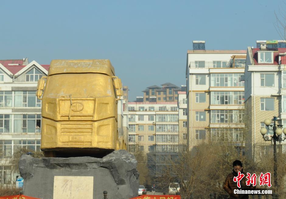 An automobile model, dyed with luxurious gold color, was displayed at a community in Changchun, capital of northeast China's Jilin Province, on Nov. 18, 2014. (Source: Xinhuanet.com/ Chinanews.com)