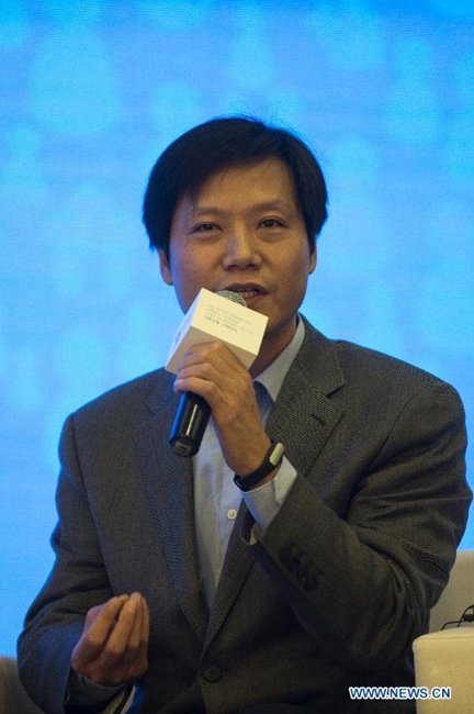 Lei Jun, CEO of technology firm Xiaomi, addresses the Chinese and Foreign Internet Leaders Summit during the World Internet Conference in Wuzhen, east China's Zhejiang Province, Nov. 20, 2014. Representatives from nearly 100 countries and regions took part in the three-day 2014 World Internet Conference that kicked off Wednesday in Wuzhen. (Xinhua/Ju Huanzong)