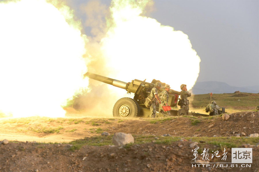 In this autumn, a field artillery brigade of the 27th Group Army of the PLA maneuvers from northwest China to the beach of the Bohai Sea to conduct a live-fire drill and successfully hit a dozen of mobile targets on the sea. (BJ.81.cn/Chang Tianlong)
