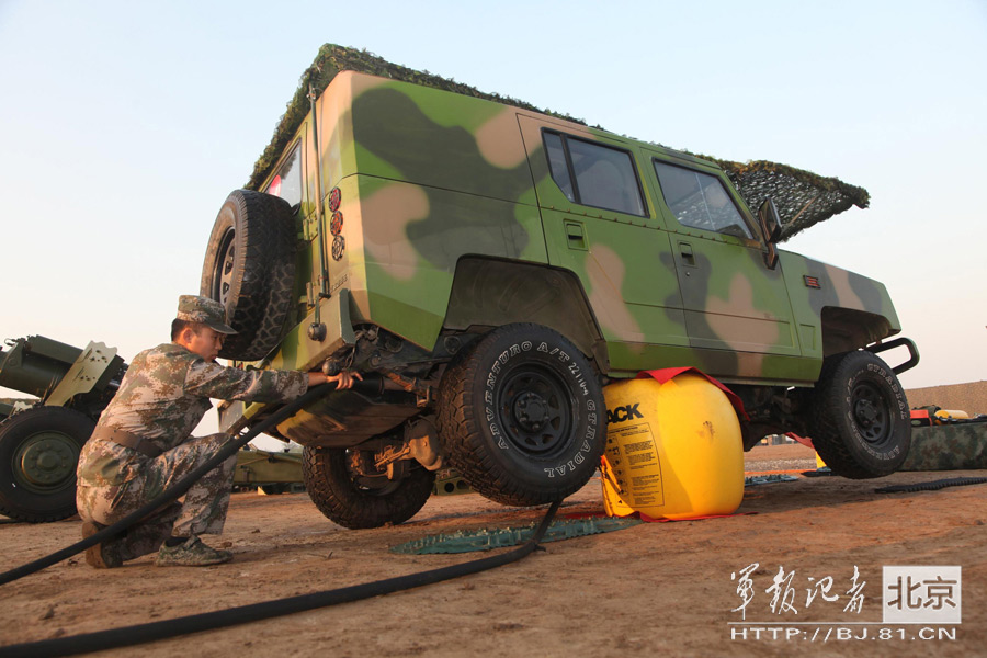 In this autumn, a field artillery brigade of the 27th Group Army of the PLA maneuvers from northwest China to the beach of the Bohai Sea to conduct a live-fire drill and successfully hit a dozen of mobile targets on the sea. (BJ.81.cn/Chang Tianlong)