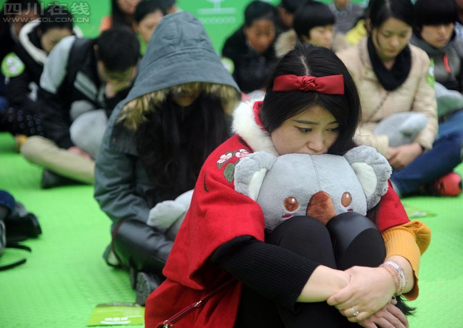 On Nov. 18, 2014, about 200 people participate in China’s first “Daydreaming Competition” held in Chengdu, southwest China’s Sichuan province. The participants are required to daydream in two hours without moving, laughing or falling asleep, otherwise they will be eliminated. The oldest participant is 70 years old, while the youngest is no more than 10 years old. (Chinanews/Zhang Liang)