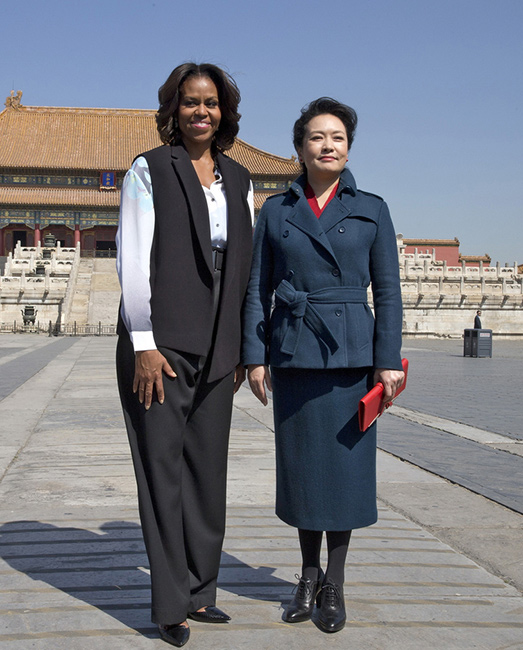 Peng Liyuan takes photos with Michelle Barack in the Forbidden City. (Photo/ forum.china.com.cn)