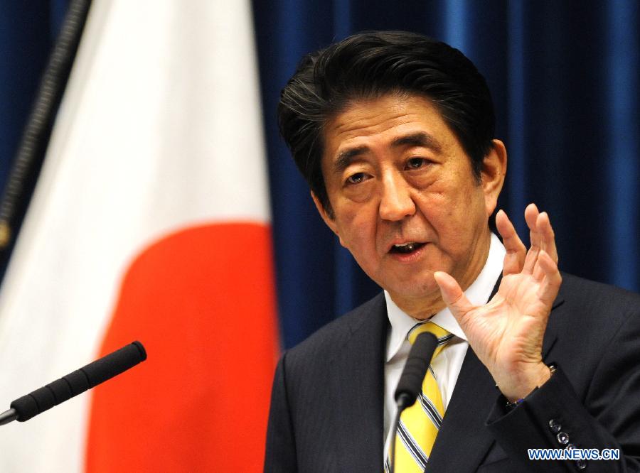 Japanese Prime Minister Shinzo Abe speaks during a press conference at his official residence in Tokyo, Japan, Nov. 21, 2014. Japan dissolved the House of Representatives, or the lower house in its bicameral parliament, on Friday for a general election slated for Dec. 14, with Prime Minister Shinzo Abe's economic policies dubbed "Abenomics" and other polices to be tested in the looming vote. (Xinhua/Stringer)