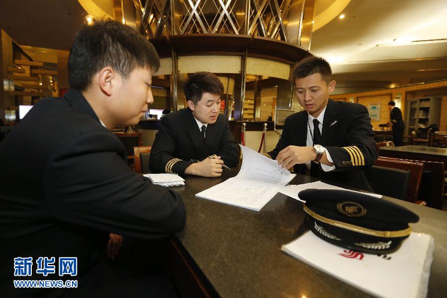 Zhou (R) makes preparation before flying in Beijing.(Xinhua/Zhang Yuwei)