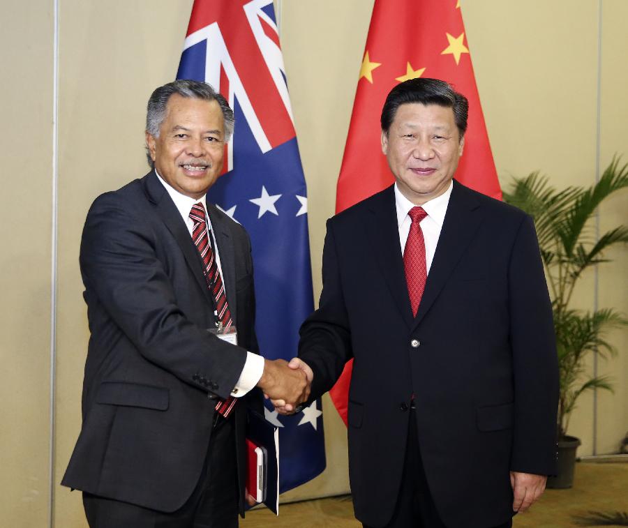 While meeting with Toke Talagi, prime minister of Niue, Xi said that the China and Niue have developed a sound relationship, and China is wiling to expand friendly exchanges with Niue, enhance cooperation in fishery, infrastructure construction and medical and health services, to help accelerate Niue's development.