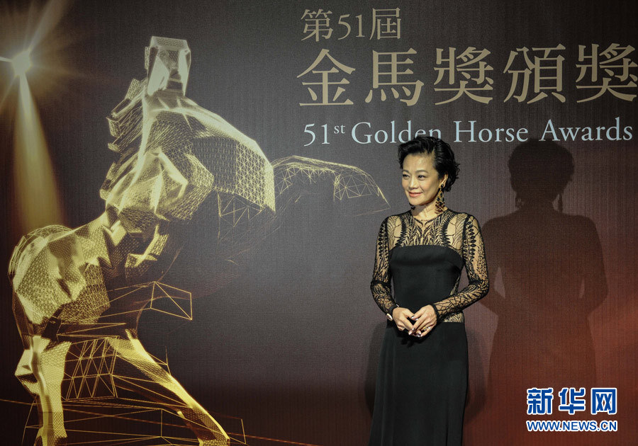 Sylvia Chang, chairwoman of the executive committee of the Taipei Golden Horse Festival, waves as she is present at the 51st Golden Horse Awards in Taipei, southeast China's Taiwan, Nov. 22, 2014. (Xinhua/Shen Hong)