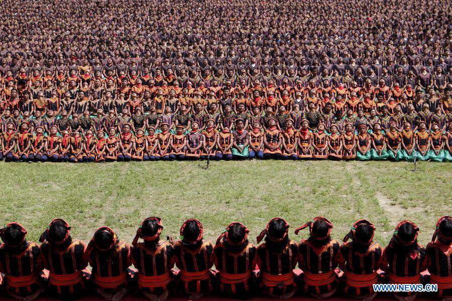 People perform Saman dance in Aceh, Indonesia, Nov. 24, 2014. More than 5,000 people participated in the mass Saman dance here on Monday. Indonesia's Saman dance was recognized as the world's intangible cultural heritage by the United Nations Educational, Scientific and Cultural Organization (UNESCO). (Xinhua/Junaidi)