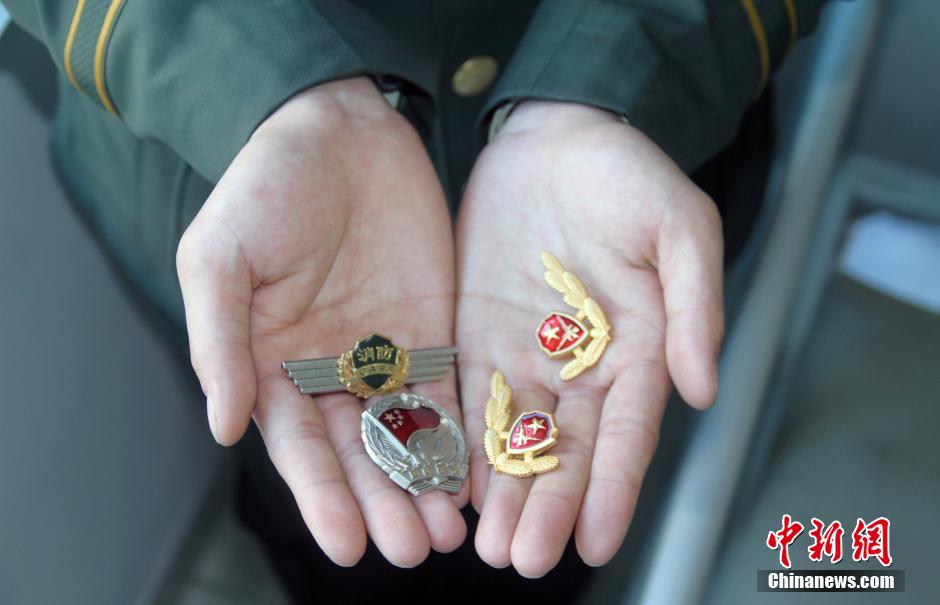 A soldier holds the badge in his hands. (CNS/Wang Jiao)