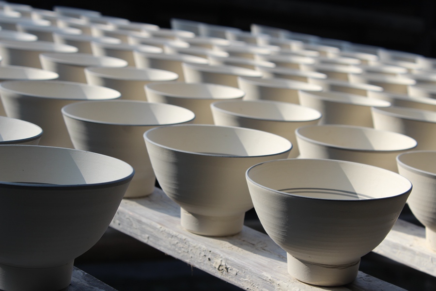 Unfinished porcelain is put under the sun to dry before put into the kiln, at the Jingdezhen Ancient Kilns in Jingdezhen city, Jiangxi province on Nov. 18, 2014. (Photo/People's Daily Online)