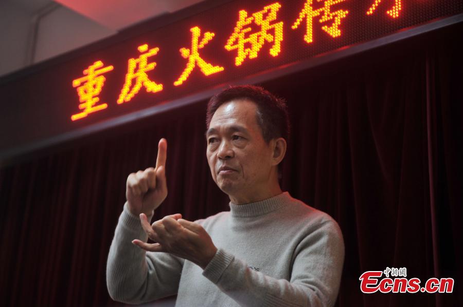 Li Dejian, head of the hotpot association in Chongqing gives lecture to 40 students during a theory class of the Chongqing Hotpot Academy on November 25, 2014. The training program as the first class of the academy was attended by 40 business owners in hotpot industry. [Photo: China News Service/ Chen Chao]