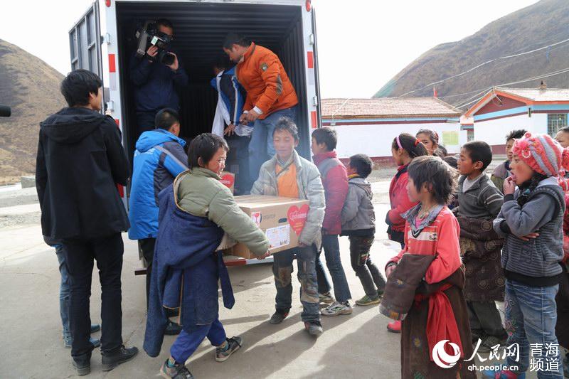 Children are excited to get their clothes. (Photo/qh.people.cn)
