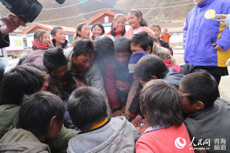 Children are excited to get their clothes. (Photo/qh.people.cn)