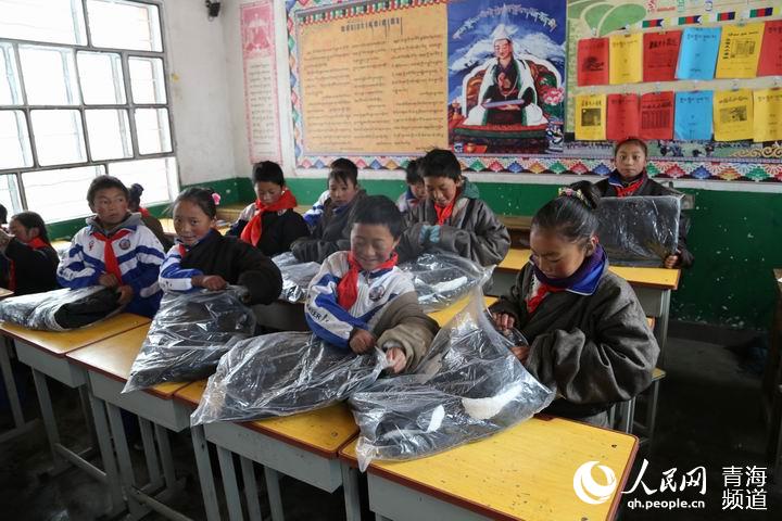 Children cannot wait to open their packages. (Photo/qh.people.cn)