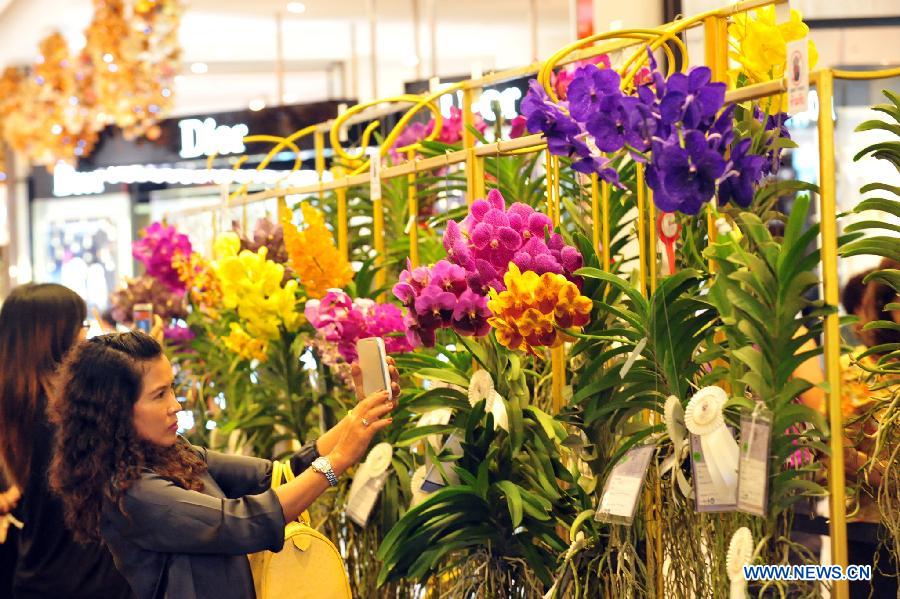 Visitors watch orchids on the 8th Siam Paragon Bangkok Royal Orchid Paradise in Bangkok, Thailand, Nov. 27, 2014. (Xinhua/Rachen Sageamsak)