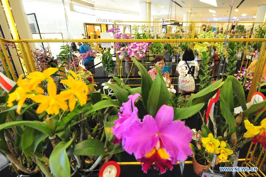 Visitors watch orchids on the 8th Siam Paragon Bangkok Royal Orchid Paradise in Bangkok, Thailand, Nov. 27, 2014. (Xinhua/Rachen Sageamsak)