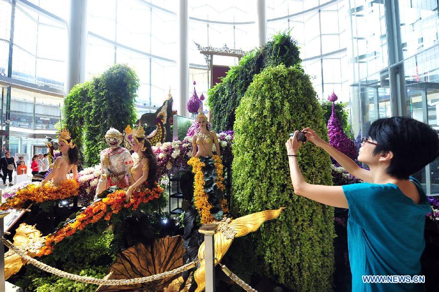 Visitors watch orchids on the 8th Siam Paragon Bangkok Royal Orchid Paradise in Bangkok, Thailand, Nov. 27, 2014. (Xinhua/Rachen Sageamsak)