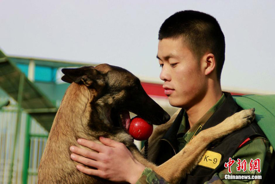 The fireman and his rescue dogs. (CNS/Shi Yonghong)