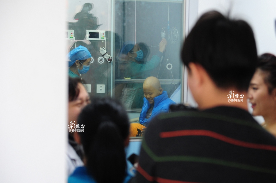 Gao Zunshou, 10, prepares to get out of sterility cabin after marrow transplantation on the afternoon of Nov. 19, 2014. (Iqili/Yu Peng, Li Ruiping)
