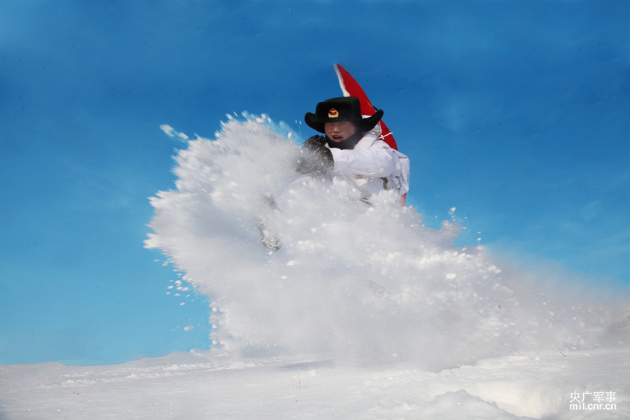 | Chinese border soldiers march on a snow mountain during the winter military training in northwest China's Xinjiang Uygur Autonomous Region, Nov. 30, 2014. Soldiers went through harsh environment as the local temperature dropped to minus 25 degrees Celsius here. (Source: mil.cnr.cn) |