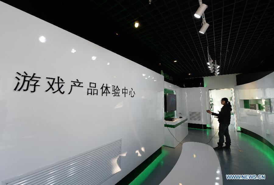 A man plays video games at the Microsoft Game Innovation Center in Dachang Hui Autonomous County, north China's Hebei Province, Dec. 2, 2014. The center which opened on Tuesday is the second incubation base of game innovation founded by Microsoft Corp in China. (Xinhua/Wang Xiao)