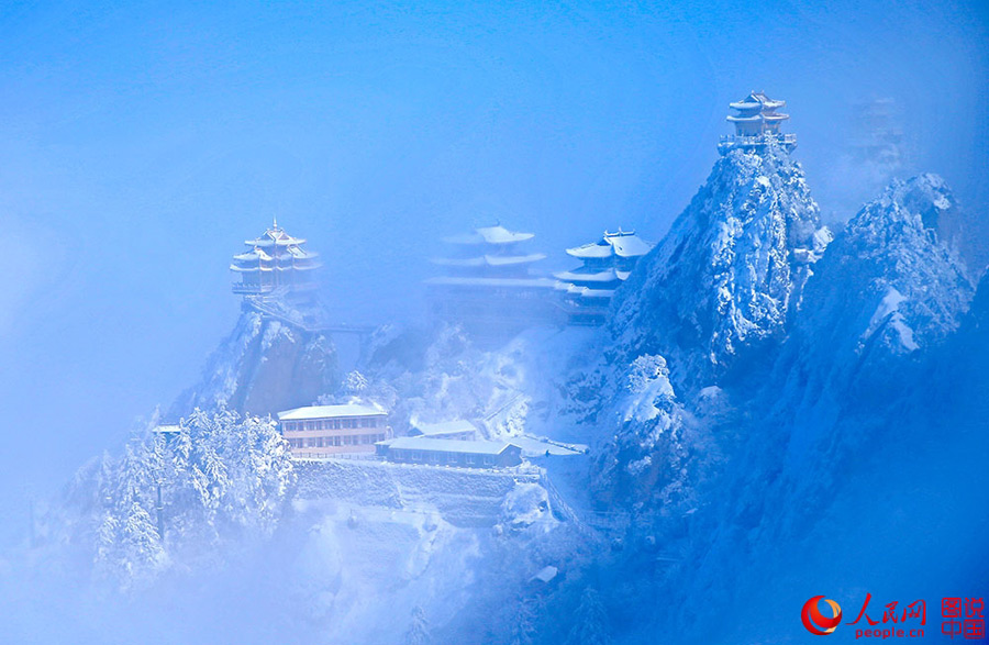 Located in Luanchuan county, central China’s Henan province, Laojunshan Mountain is famous for its rich Taoist culture and wonderful scenery. In winter, the snow adds more charm to its unique landscape. (Photo source: People.cn)