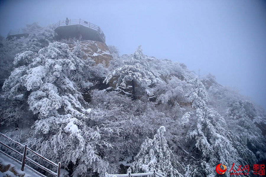 Located in Luanchuan county, central China’s Henan province, Laojunshan Mountain is famous for its rich Taoist culture and wonderful scenery. In winter, the snow adds more charm to its unique landscape. (Photo source: People.cn)