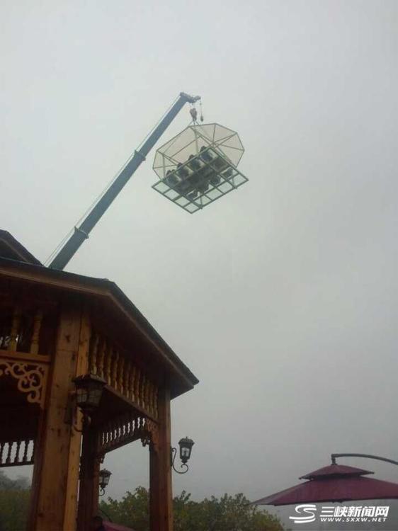 Citizens dine in a “restaurant in the sky” at a mountain park in Yichang, central China’s Hubei province on Dec. 1, 2014. This glass-made restaurant has only one table for 16 people to dine together. Since there is no rail around the table, the customers should wear seat belts. According to the waiter, the restaurant can be lifted to 30 meters above ground. (Photo source: www. sxxw.net)