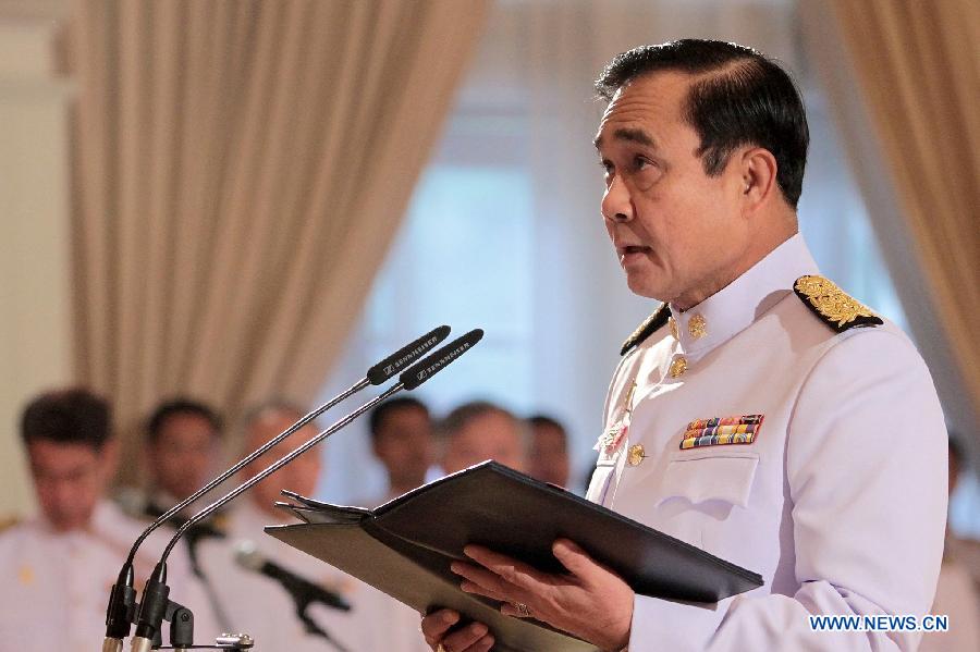 | Thai Prime Minister Gen. Prayuth Chan-ocha speaks at the oath swearing ceremony of allegiance to be good government officials as part of the King Bhumibol Adulyadej's upcoming 87th birthday celebration at Government House in Bangkok, Thailand, Dec. 3, 2014. Thai King Bhumibol Adulyadej would celebrate his 87th birthday on Dec. 5. (Xinhua/Rachen (azp) Sageamsak) |