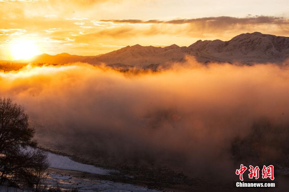 The beautiful secondary forest is shrouded by winter mist at the Kashgar River Valley in Nilka county, northwest China’s Xinjiang Uyghur autonomous region on Dec 1, 2014. With the mist still lingering around, part of the secondary forest sparkles in winter sunshine at the Kashgar River Valley in Nilka county, northwest China’s Xinjiang Uyghur autonomous region. The secondary forest in Nilka, the largest and best-reserved in Asia, covers an area of 210,000 hectares and extends 100 kilometers. The Kashgar River Valley is home to a great diversity of animals and plants. (China News Service/Chen Hualin)