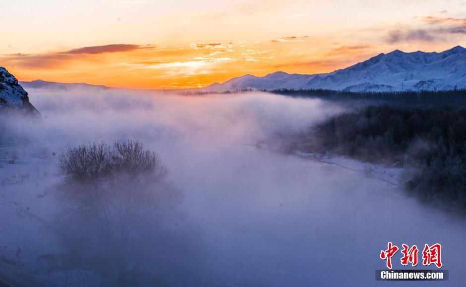 The beautiful secondary forest is shrouded by winter mist at the Kashgar River Valley in Nilka county, northwest China’s Xinjiang Uyghur autonomous region on Dec 1, 2014. With the mist still lingering around, part of the secondary forest sparkles in winter sunshine at the Kashgar River Valley in Nilka county, northwest China’s Xinjiang Uyghur autonomous region. The secondary forest in Nilka, the largest and best-reserved in Asia, covers an area of 210,000 hectares and extends 100 kilometers. The Kashgar River Valley is home to a great diversity of animals and plants. (China News Service/Chen Hualin)