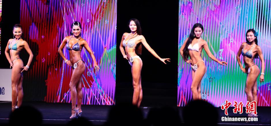 Eye-catching contestants in International beach bodybuilding competition. (CNS/Chen Wenwu)
