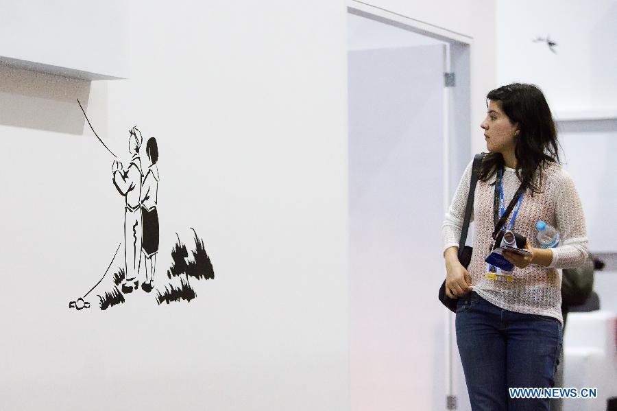 | A woman looks at the paintings on the wall of the China Pavilion during the UN Climate Change Conference in Lima, capital of Peru, Dec. 3, 2014. The activities in China Pavilion, which kicks off on Dec.5, will present 17 events including forums and press conferences featuring China's efforts and achievements in addressing the climate change. (Xinhua/Xu Zijian) |